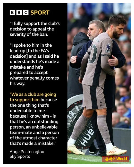 포스테코글루 감독은 이러한 상황 속에서도 벤탄쿠르를 옹호하는 태도를 보였습니다. 그는 "벤탄쿠르는 뛰어난 팀 동료이며, 가장 훌륭한 성격을 가진 사람"이라며, 클럽이 그의 징계에 항소하는 결정을 전적으로 지지한다고 밝혔습니다.