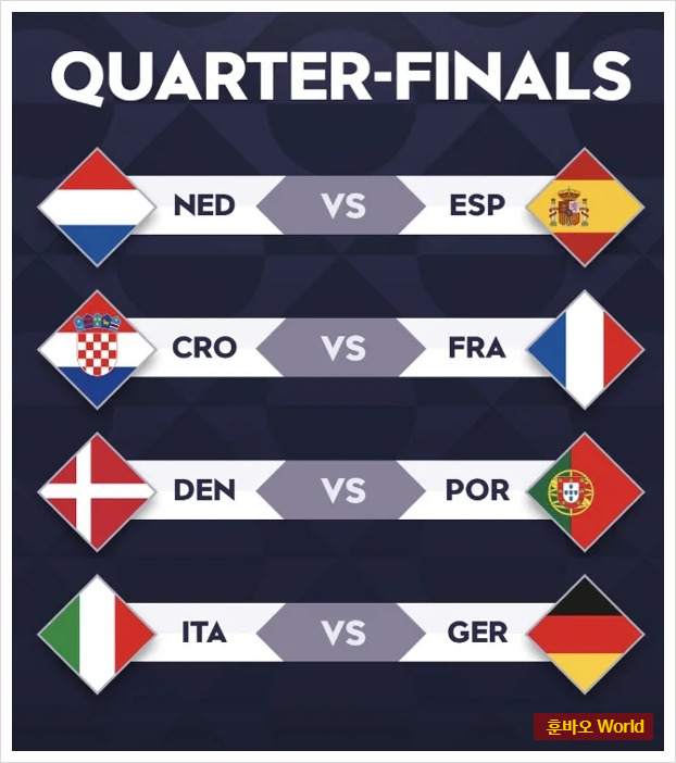 이번 네이션스리그 8강 대진은 유럽 축구의 강호들로 구성되었습니다. 조별리그에서 각조 1위를 차지한 포르투갈, 프랑스, 독일, 스페인과 조 2위로 올라온 크로아티아, 이탈리아, 네덜란드, 덴마크가 맞붙습니다. 8강전은 내년 3월 20일과 23일에 홈 앤 어웨이 방식으로 치러질 예정입니다.
