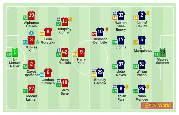 축구 통계 매체 소파스코어 역시 김민재에게 양 팀 선수들 중 가장 높은 평점인 8.2점을 부여하며 그의 활약을 인정했습니다. 이러한 겹경사는 김민재가 얼마나 완벽한 경기를 펼쳤는지 보여주는 지표입니다.