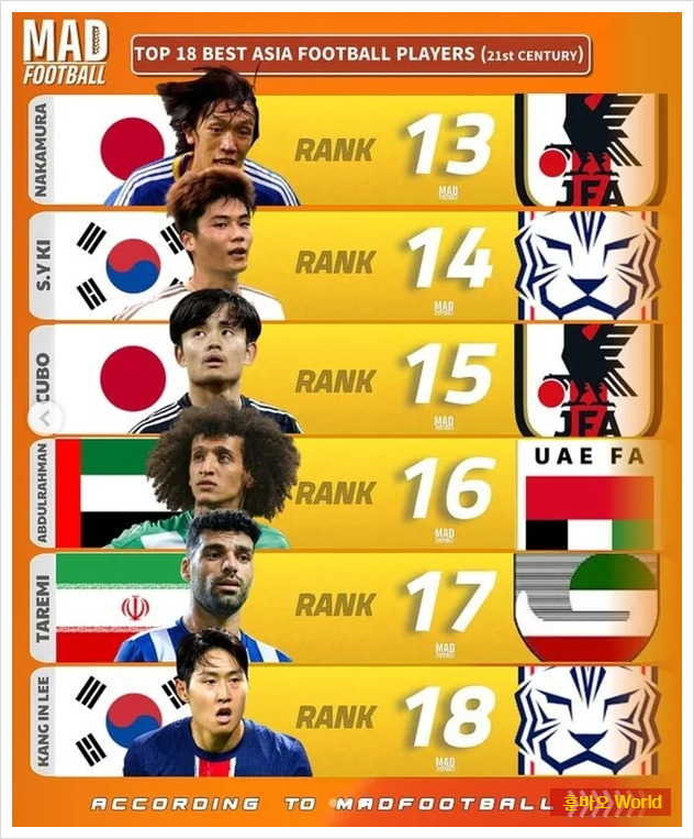 19위에는 파리 생제르맹(PSG)에서 활약 중인 이강인이 선정되었습니다. 이강인은 아직 젊은 나이에도 불구하고 뛰어난 기술과 창의적인 플레이로 유럽 무대에서 존재감을 발휘하고 있습니다. 앞으로 그의 성장이 더욱 기대됩니다.
