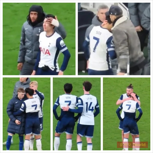 경기 종료 휘슬이 울린 후, 손흥민은 쉽게 경기장을 떠나지 못하고 눈물을 보였습니다. 소셜미디어에는 손흥민이 고개를 떨군 채 동료들에게 위로받는 모습이 퍼지며 팬들의 마음을 아프게 했습니다.