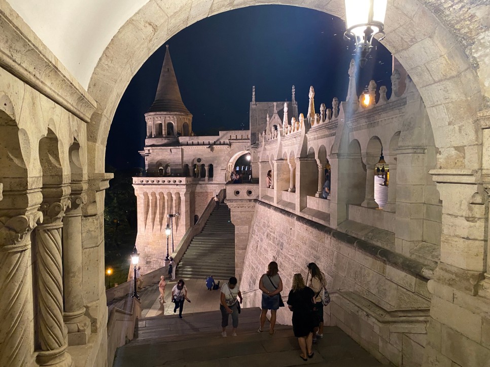 전체가 긴 회랑으로 연결되어 있으며, 하얀 색의 화려한 성벽과 마차시교회까지 뻗어있는 계단이 아름답다.