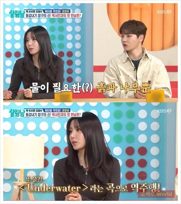 권은비는 KBS 2TV ‘살림하는 남자들’에 출연해 자신이 물과 잘 맞는다는 사주 이야기를 꺼냈습니다. 그녀는 “사주에 흙과 나무가 있어서 물이 좋다고 하더라”며 “워터밤 행사와 잘 맞았던 것 같다”고 말했습니다. 그녀는 워터밤 무대를 통해 곡 ‘언더워터’로 역주행에 성공한 이야기를 덧붙이며 자신도 놀라운 결과에 감격했다고 밝혔습니다.