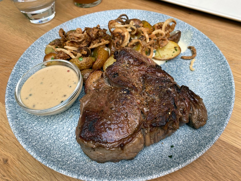 넓고 트렌디한 음식점 Beerstro14에서 수제 맥주와 스테이크, 슈니첼, 립 등의 고기 메뉴를 즐길 수 있다.