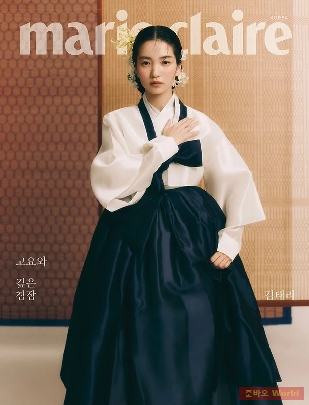 김태리의 이번 화보는 한복과 어우러진 전통적인 한국의 배경에서 촬영되어 더욱 깊이 있는 아름다움을 표현했습니다. 그녀는 심플하면서도 세련된 한복을 자신만의 매력으로 완벽하게 소화하며 보는 이들의 시선을 사로잡았습니다.