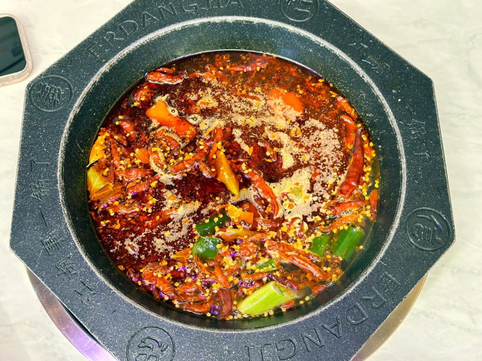 이곳의 대표 메뉴인 홍탕은 매콤한 사천 특유의 맛이 일품이며, 강렬한 향신료와 부드러운 육수의 조화가 인상적입니다.