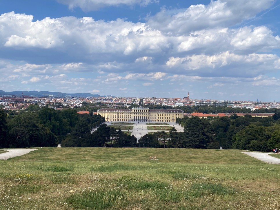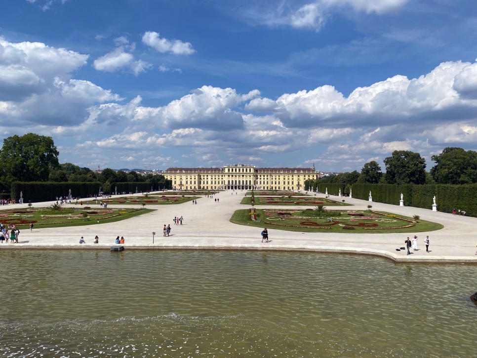 합스부르크 왕조와 부르봉 왕조의 라이벌 사이를 알 수 있는데, 부르봉 왕조가 먼저 베르사유 궁전을 떡 하니 지어 놓으니 이에 열받은 합스부르크 왕조가 베껴오되 배치를 다르게 하여 차별화를 두었다.
