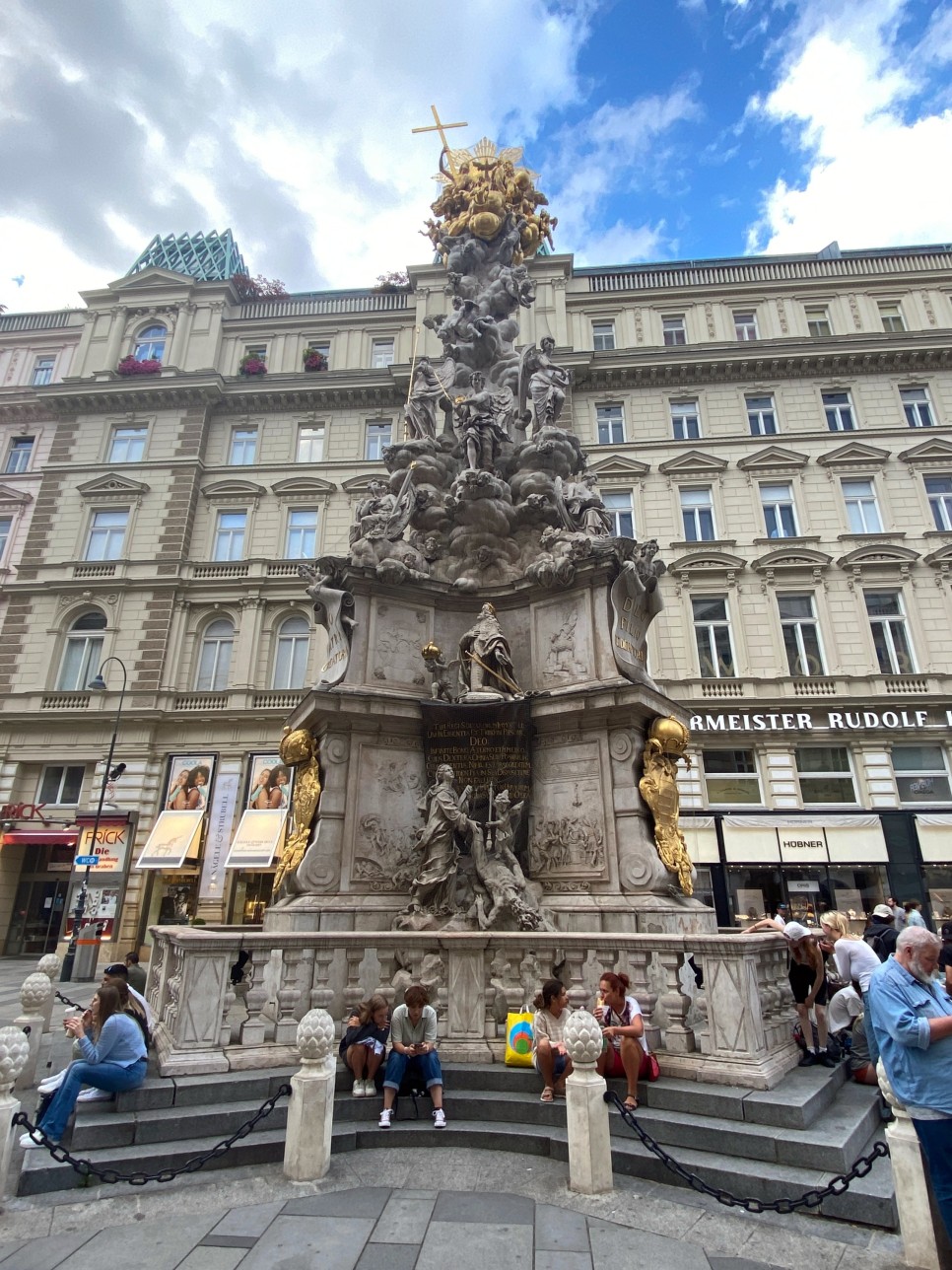 그라벤의 페스트탑(페스트조일레)은 아마 비엔나에서 가장 아름다운 조각작품일 것이다. 1679년 비엔나에 대역병이 돌자 역병을 피해 비엔나를 떠나던 레오폴드1세 황제는 만일 역병이 곧 사라지면 감사의 탑을 세워 만인들에게 하나님의 자비와 은혜를 알리도록 하겠다고 약속했다. 이에 따라 역병이 주춤해지자 비엔나시는 그 해에 우선 임시로 목재 페스트조일레를 만들고 상단에 성삼위일체를 나타내는 조형물을 설치하여 황제의 뜻을 표현코자했다. 성삼위일체 조형물의 주변에는 수많은 천사들이(정확하게는 아홉천사: 아홉천사는 모든 품계의 천사를 의미함: Neun Chöre der Engel) 둘러싸고 있는 내용도 조각으로 만들어 설치했다. 역병이 물러난 1683년 레오폴드 황제는 거장 마티아스 라우흐밀러(Matthias Rauchmiller)에게 지시하여 정식으로 대리석 페스트조일레를 건립토록 했다. 그러나 라우흐밀러는 1686년 천사 몇 명만 조각해 놓은후 갑자기 세상을 떠났다. 그래서 기존의 설계에 대한 변경이 이루어질 수밖에 없었다. 그후 높이 69피트의 역병탑은 몇 명의 조각가들이 분담하여 건설하게 되었다.