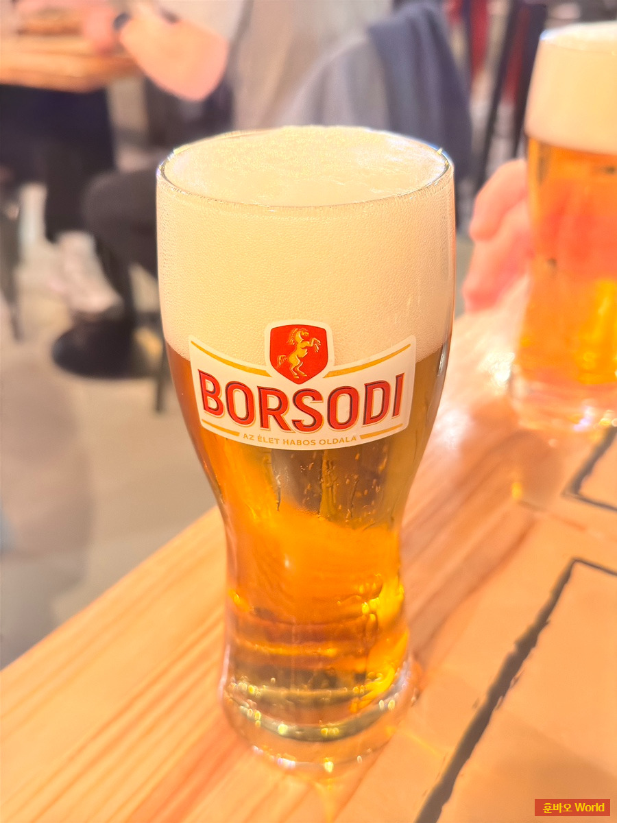 함께 주문한 BORSODI 맥주는 헝가리의 대표적인 라거로, 치킨과의 조화가 일품이었습니다.