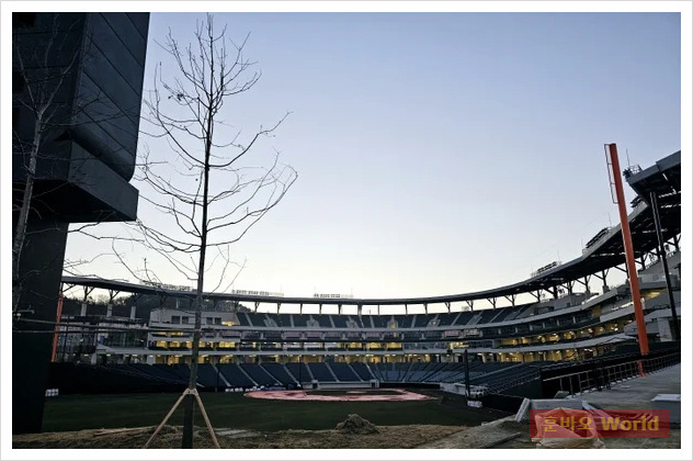 파란 잔디가 깔린 그라운드와 세련된 관중석은 이미 팬들의 기대감을 높이고 있어요.