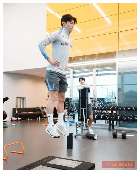 토트넘 훈련장에 적응 중이에요.