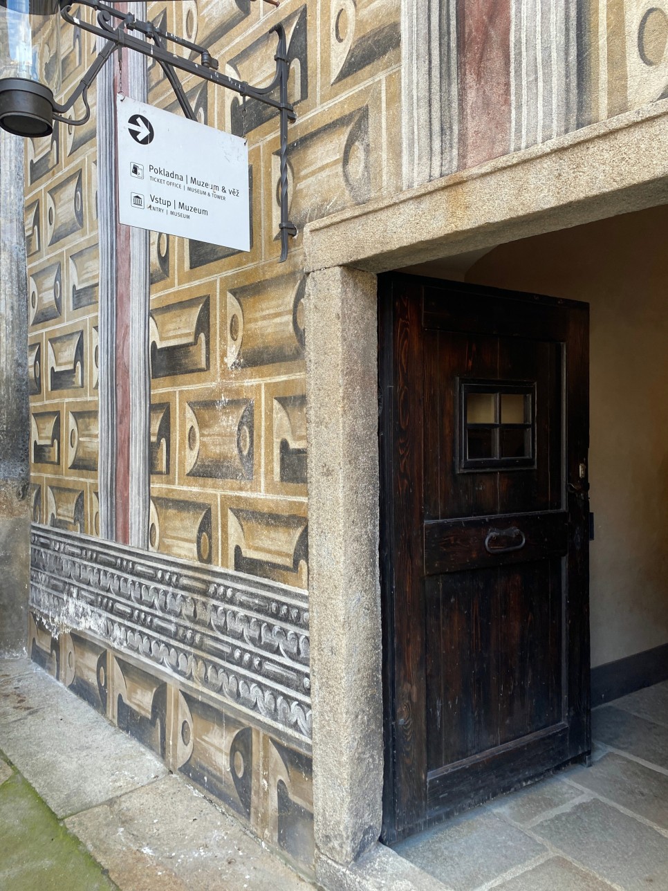 흐라데크 탑을 비롯한 이곳 성안 건물들의 벽면을 자세히 보면 스크라피토 기법으로 그려 놓은 그림들을 많이 볼 수 있는데, 스크라피토 기법은 평면을 입체적으로 보이도록 하는 일종의 착시현상을 일으키는 그림 기술이다. 이 스크라피토 기법을 찾아보는 재미도 쏠쏠하다.
