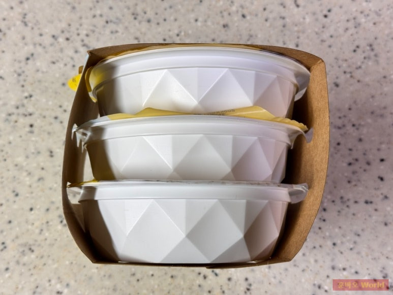 패키지를 열어보면 3개의 밥 용기가 안정적으로 쌓여있어요.