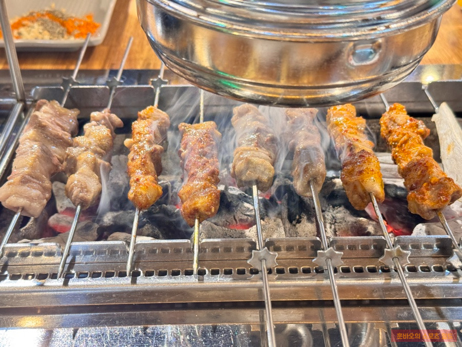 숯불에 양꼬치 굽는 소리와 냄새가 대박!
