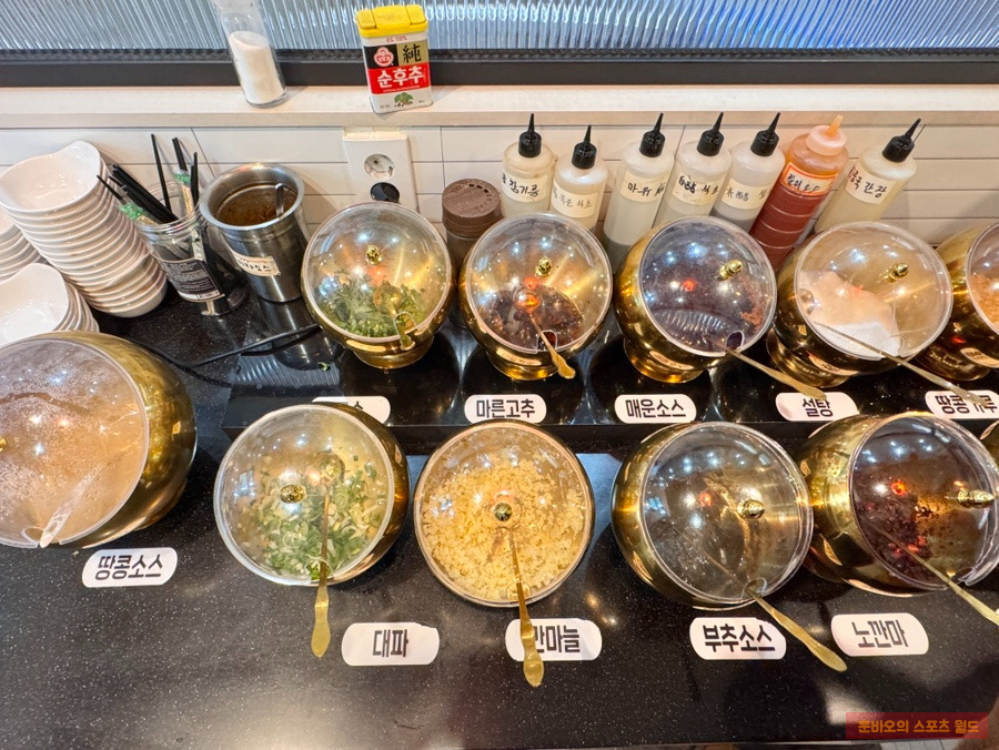마늘, 고수, 땅콩소스, 매운소스 등등