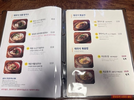 이곳은 태국 쌀국수, 볶음면, 덮밥, 사이드 메뉴까지 다양한 태국 요리를 판매해요.