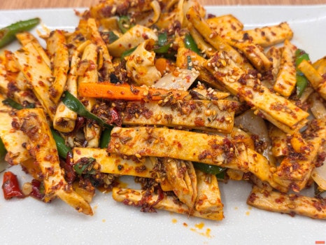 마라풍 간장소스로 볶아낸 요리예요.