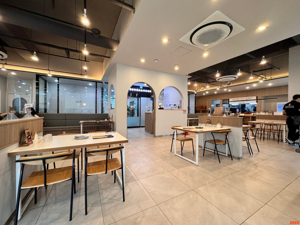 내부로 들어가니 넓고 환한 인테리어가 딱 마음에 들었어요. 테이블 간 간격이 넓어서 옆자리 신경 안 쓰고 편하게 식사할 수 있겠더라구요. 무엇보다 창가 자리에서 호수 뷰가 한 폭의 그림처럼 보여서 데이트, 가족 모임 다 좋은 분위기였답니다.