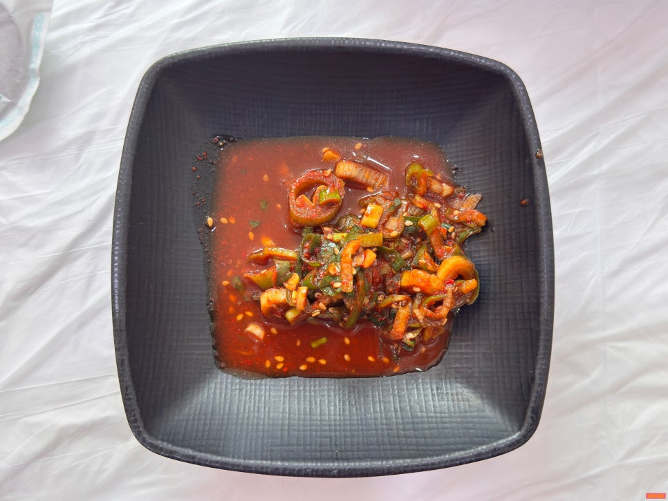 매콤하면서 새콤한 양념이 곰탕 고기랑 잘 어울렸어요.