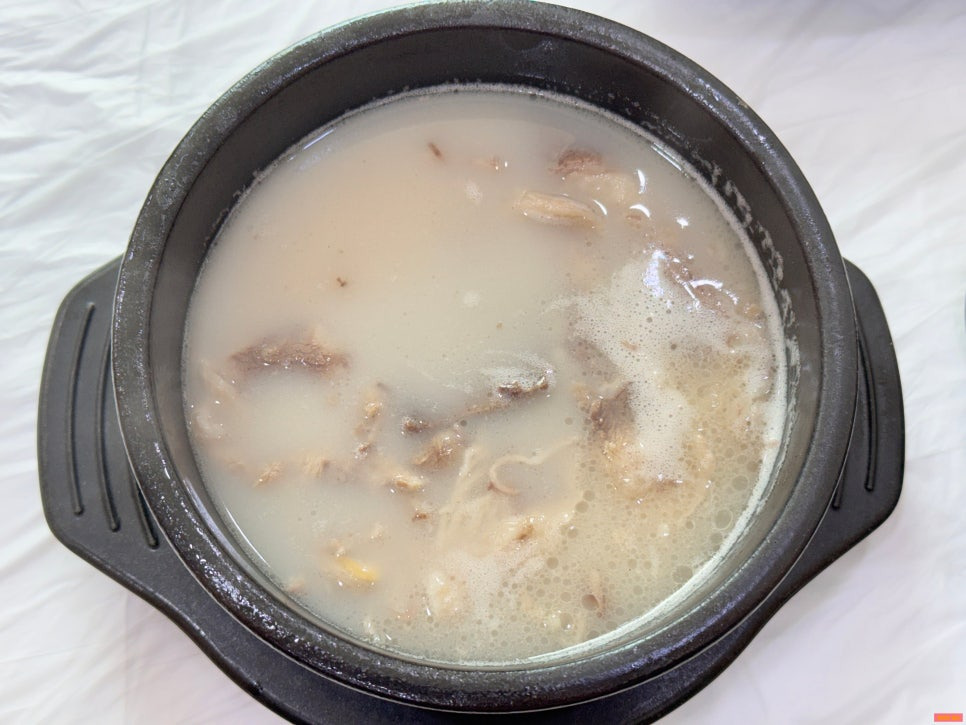 김이 모락모락 올라오는 진한 곰탕이 뚝배기에 담겨 나왔어요.