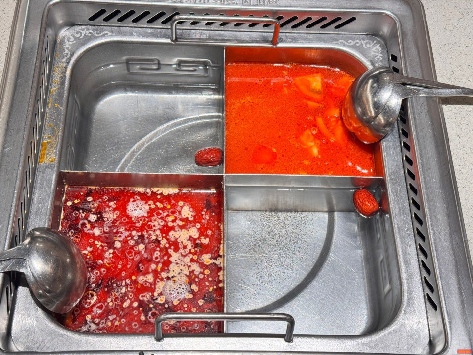 하이디라오는 국물을 최대 4가지까지 고를 수 있거든요.