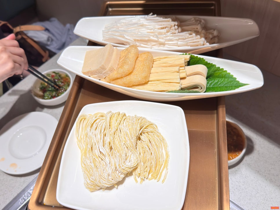훠궈는 국물도 중요하지만 이런 다양한 재료 넣어서 익혀 먹는 재미가 진짜 쏠쏠해요.