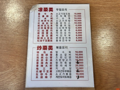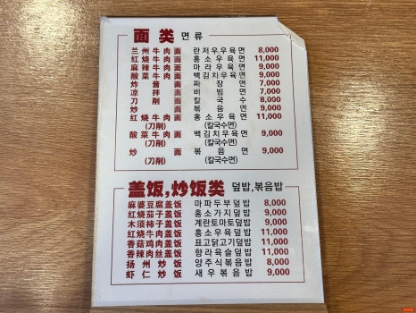 - 면류 : 우육면, 마라우육면, 비빔면, 볶음면 등등