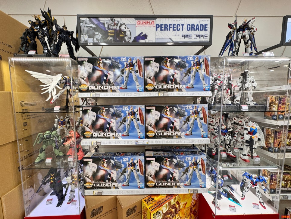 문을 열기 전부터 유리창 너머로 빼곡히 진열된 건프라들이 보여서