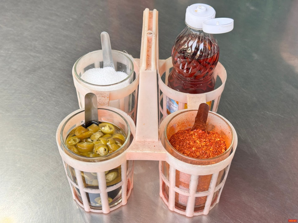 하지만 테이블마다 소스와 식초, 고춧가루, 설탕까지