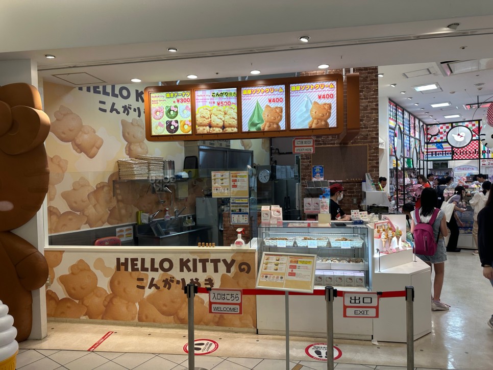 바로 구운 키티 빵을 기념품으로 사려는 사람들로 연일 북적인다.