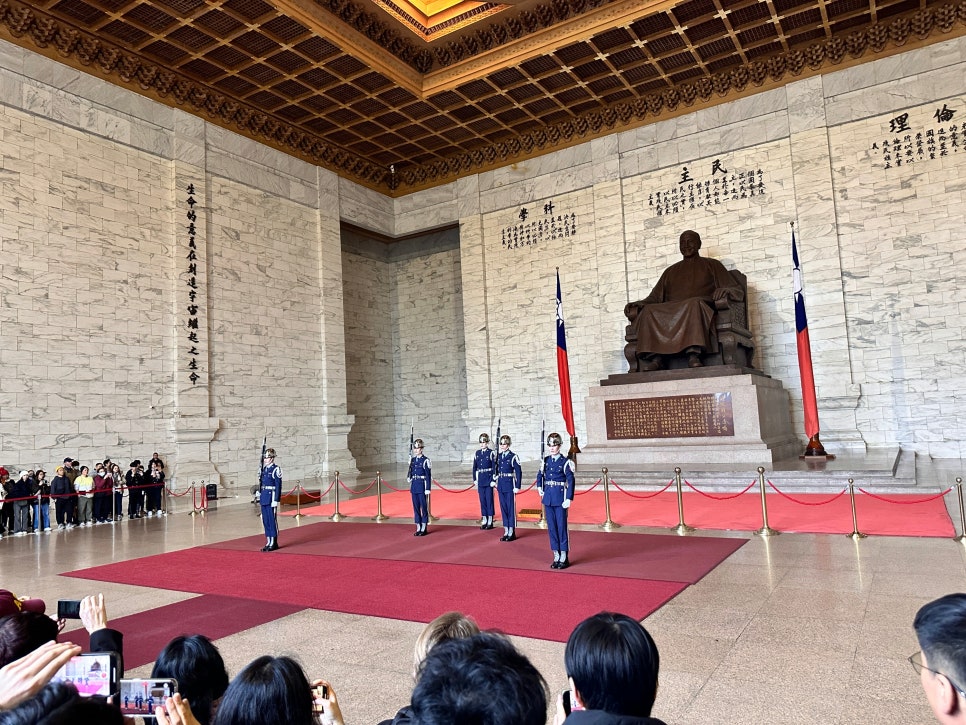 중정기념당에서 가장 인상적인 볼거리 중 하나는 위병 교체식입니다. 이는 매일 정해진 시간에 진행되며, 방문객들은 군인들의 엄숙하고 정교한 동작을 감상할 수 있습니다. 이 교체식은 군인들의 훈련과 정신력을 보여주는 것으로, 많은 이들에게 깊은 인상을 남깁니다.