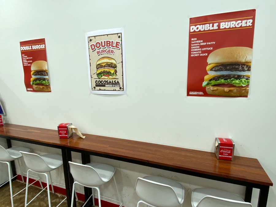 매장 벽에 더블 버거의 포스터가