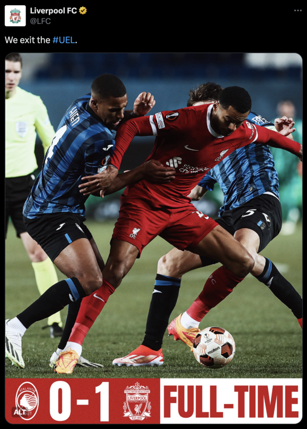 리버풀이 유로파리그 8강에서 아탈란타에 패배하며 시즌 유럽 대항전 탈락의 아쉬움을 맛봤습니다. 이탈리아 베르가모에서의 2차전 승리에도 불구하고 1차전 대패가 치명적이었던 리버풀은 이제 클롭 감독과의 마지막 시즌을 PL만 남겨두고 있습니다.