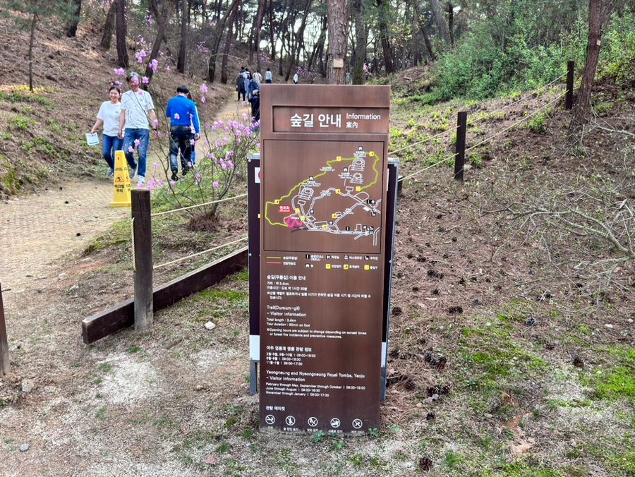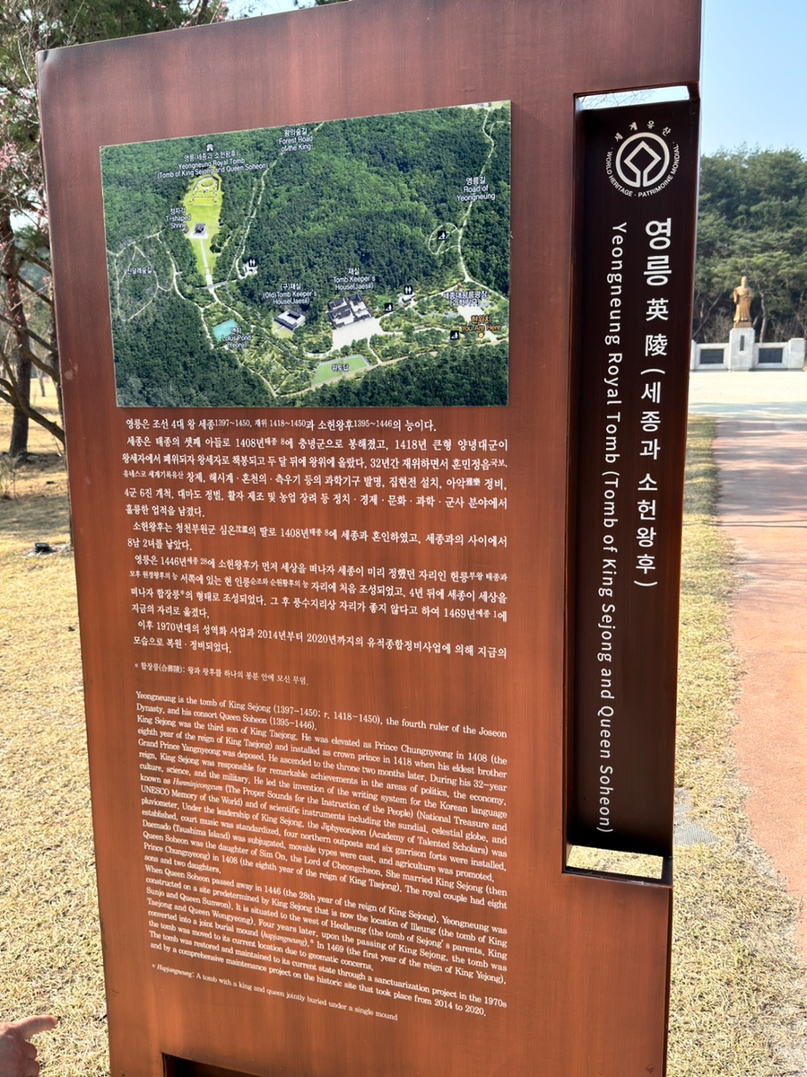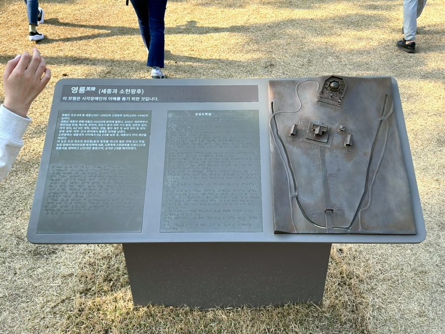 마지막으로, 세종대왕릉은 방문객 모두가 역사를 이해하고 즐길 수 있도록 다양한 언어로 된 안내판을 준비해두고 있습니다.