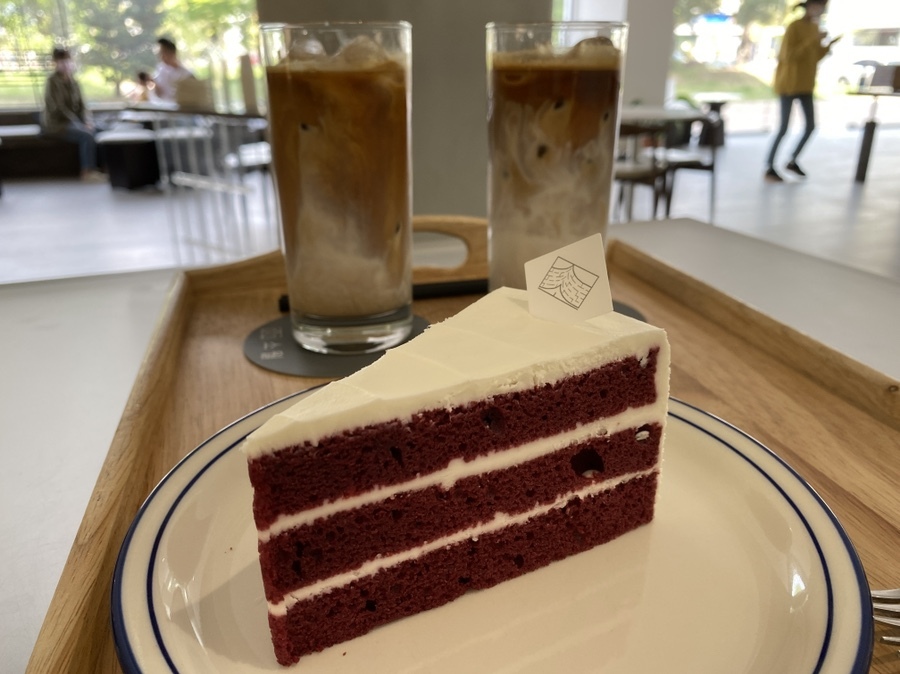 카페라떼와 레드벨벳 케잌
